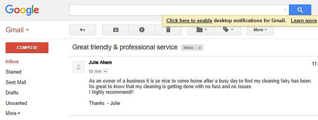 Its great to know that my cleaning is getting done with no fuss and no issues. I highly recommend this company.